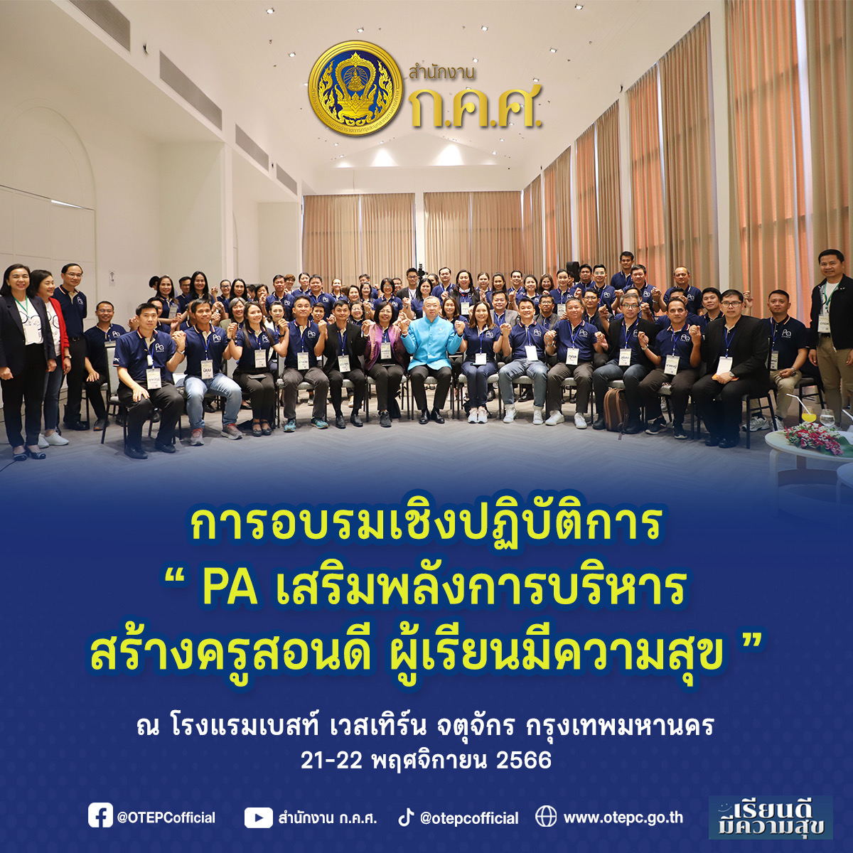 การอบรมเชิงปฏิบัติการ “PA เสริมพลังการบริหาร สร้างครูสอนดี ผู้เรียนมีความสุข”
